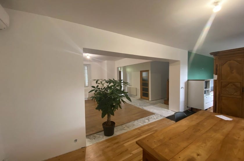 Rénovation d’une maison avec modification structurelle, ouverture mur porteur, son renforcement carbone, et construction extension attenante.